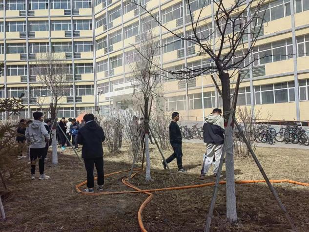 消防逃生演练在学生18号公寓楼进行。演练前,按照消防应急疏散预案,向楼宇内的学生传达了相关要求,学生党员和学生干部担任楼梯疏散员和引导员,准备演练逃生时所需的湿毛巾、湿手帕等,提醒学生提前了解绿色安全通道的位置。演练中,随着警报声响起,在疏散员和引导员的组织下,同学们按照指定路线弯腰用湿毛巾捂住口鼻迅速有序地进行紧急疏散。全体学生在第一时间撤离宿舍楼到安全地带,整个过程中同学们有序逃生,达到了预期效果。