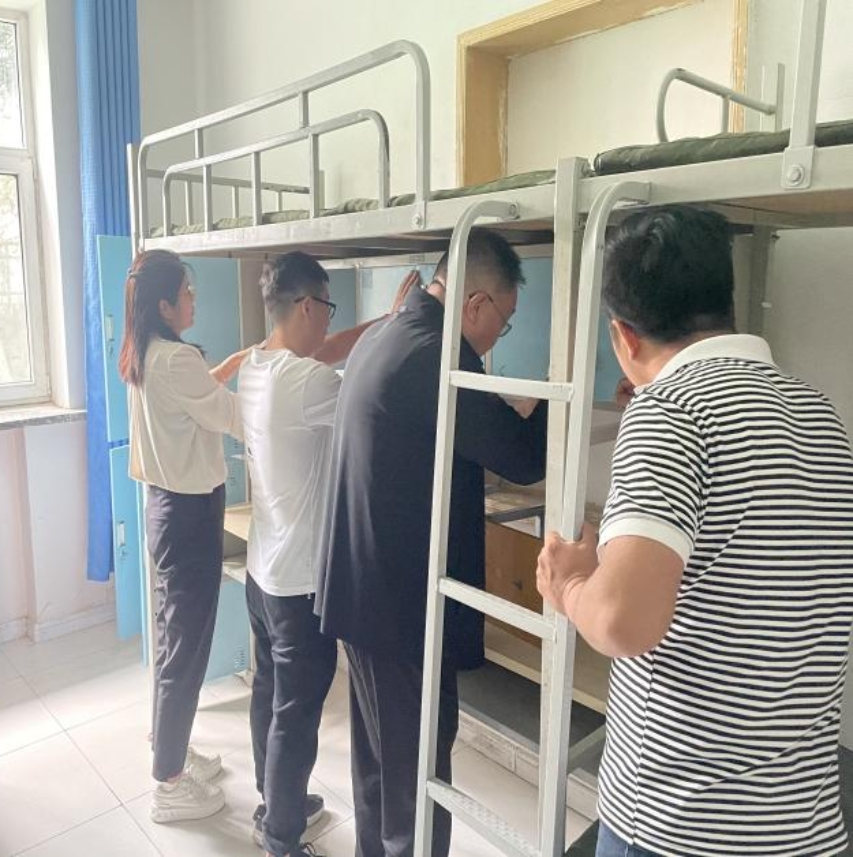学院领导仔细检查了新生宿舍的床铺衣柜和卫生环境,与宿管人员就宿舍分配及后期管理情况进行了沟通交流,指出了存在的问题,并上报后勤管理部门协调处理。