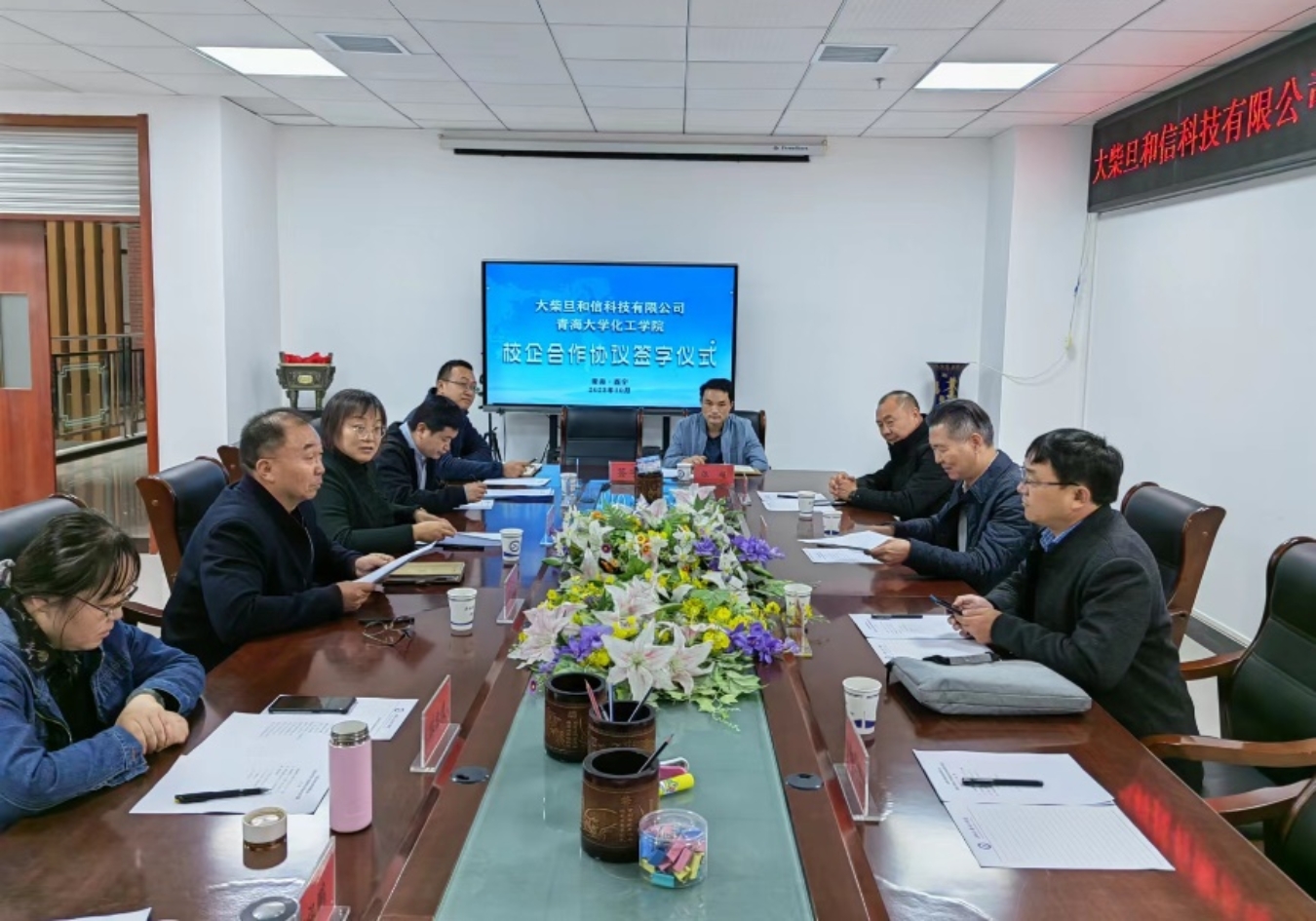 10月12日下午,狂人小说 与大柴旦和信科技有限公司在院二楼会议室举行校企合作签字仪式。和信科技有限公司董事长史志新、财务总监石建峰、销售部副经理吴立清,学院常务副院长王晓、院办公室主任樊有国、教学管理部主任郭祖鹏、学生管部主任胡鑫、化机系主任陈慧媛、化工系主任关云山、应化系主任屠兰英和相关教师代表参加了签字仪式,仪式由院党委书记杨汉宁主持。