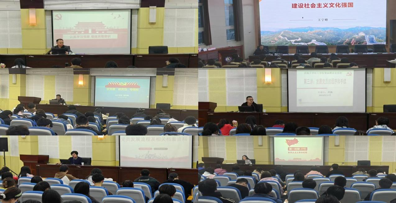 培训班上,院党委书记杨汉宁以“认真学习党章,增强党章意识”为题,以历次党章修订为主线,深入梳理党章的历史沿革及现实意义,讲述了党章背后的故事,重点解读了二十大党章中党的理论创新、实践创新和制度创新成果,引导学员全面理解党章的内容和条文,深刻认识党章的功能、地位和作用,自觉遵守党章,严格执行党章。他强调,要把学习党章党规作为必修课,自觉把党章作为做人做事的根本遵循,要学好党章,用好党章。副院长王宁峰、院党委委员樊有国和学院各教工、学生党支部书记分别以“建设社会主义文化强国”“学党章,讲党性,守规矩”“发展党员流程及档案资料”“做担当民族复兴大任的新时代新青年”“两弹一星”精神“坚持自我革命,筑牢信仰之基”“发展党员的程序和手续”“学习党史,增强党性”“学习贯彻党的二十届三中全会精神”“严守廉洁纪律,永葆清正廉洁本色”为题进行授课,教育引导参训学员把学习《中国共产党章程》与“两弹一星”精神、二十届三中全会精神、习近平总书记系列重要讲话等精神紧密结合,努力把学习成果转化为学习和生活中的不竭动力,锤炼党性凝心铸魂,坚定崇高理想信念。